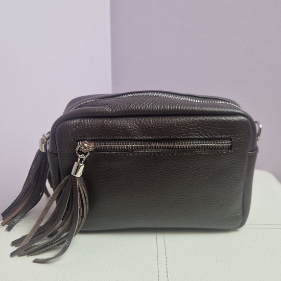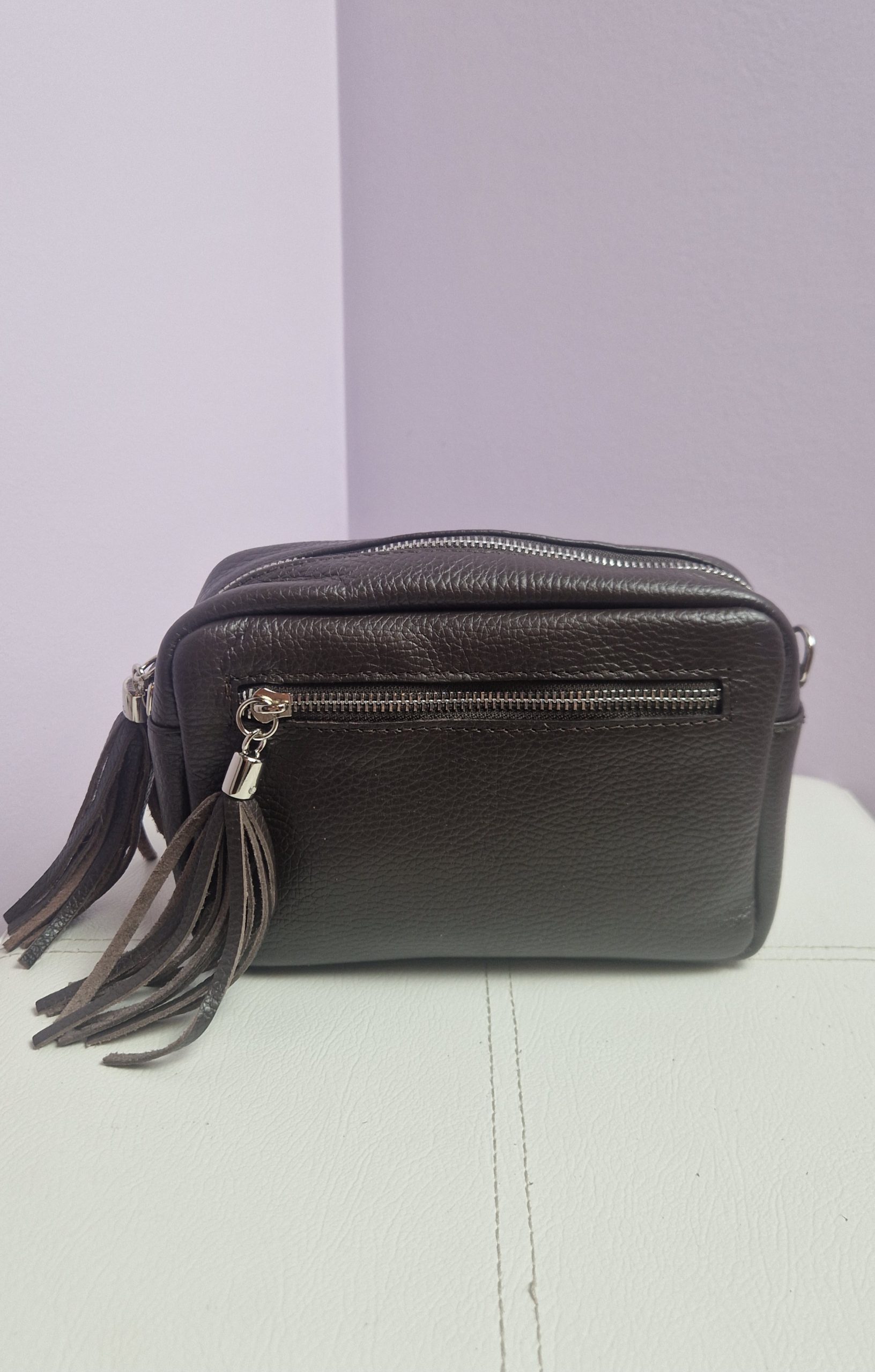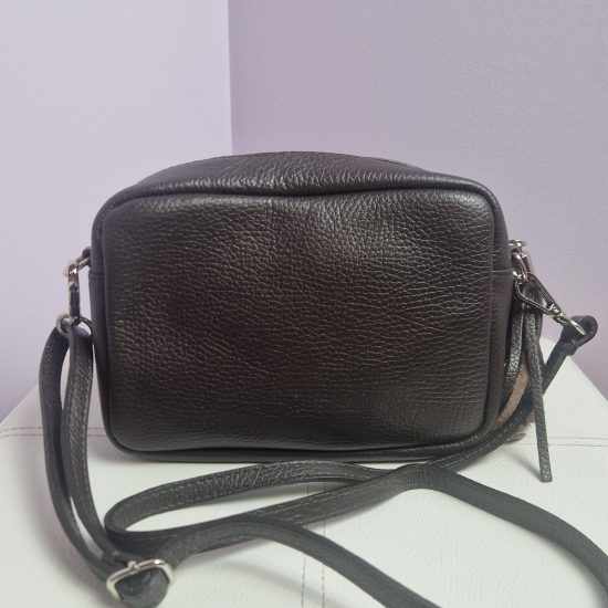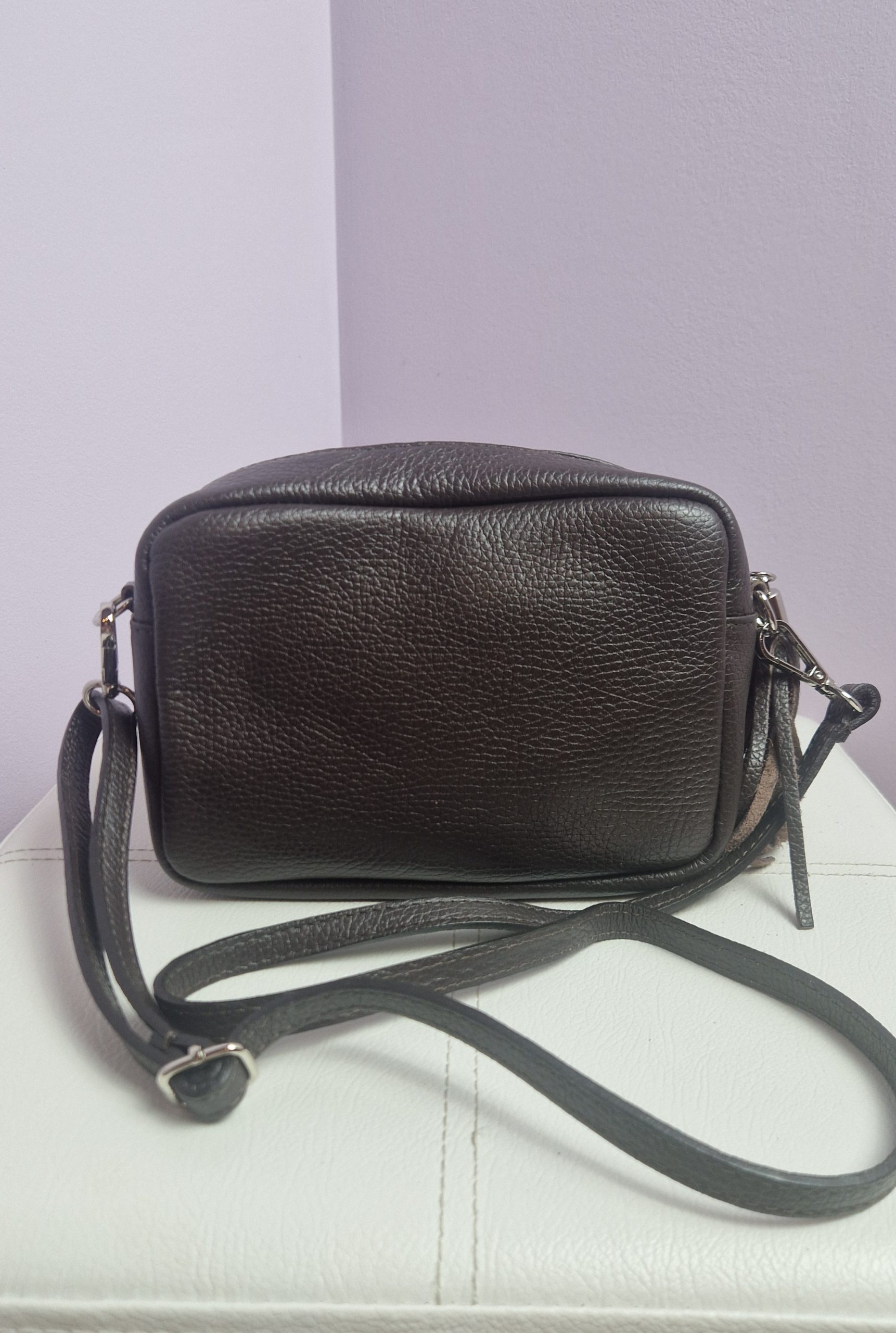 Bolso de piel, se puede llevar colgado o de mano.En dos colores marino y chocolate.