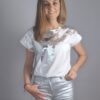 Camiseta blanca manga corta con decoración en plata.