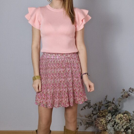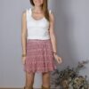 Falda corta plisada, estampado con tonos pastel, goma en la cintura,con forro.