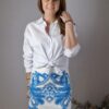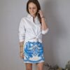 Falda con bordados en relieve, goma elástica en la parte de atrás, cremallera en el lado, forrada por dentro.