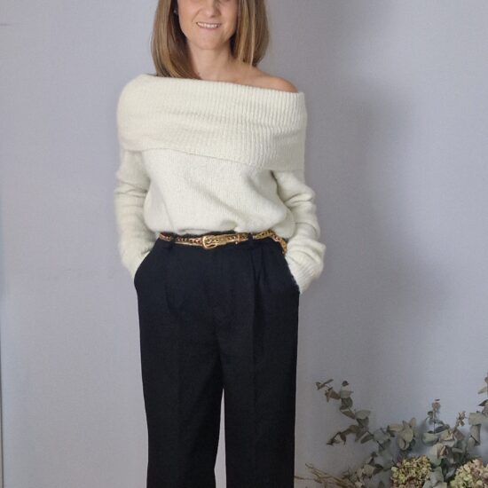 Jersey punto con hombros descubiertos.