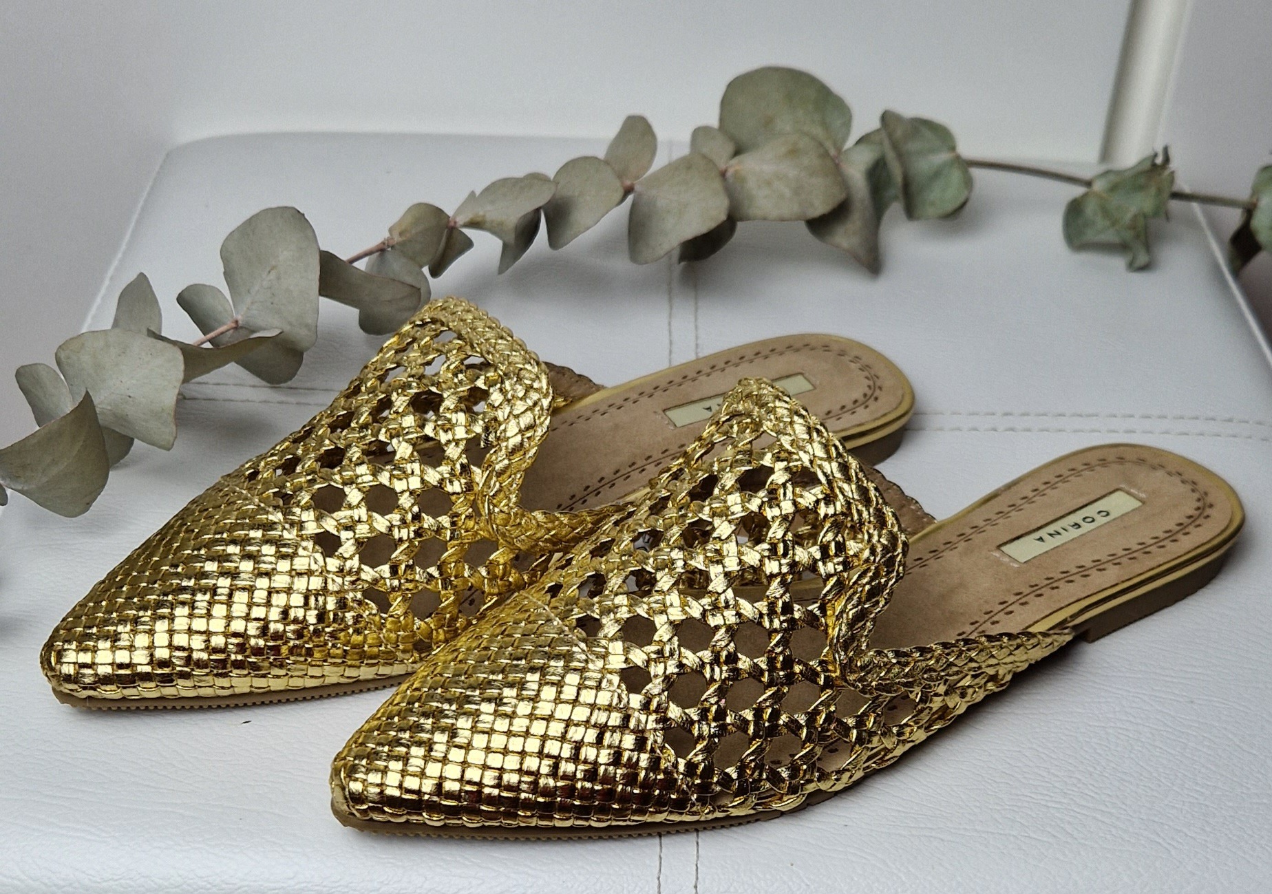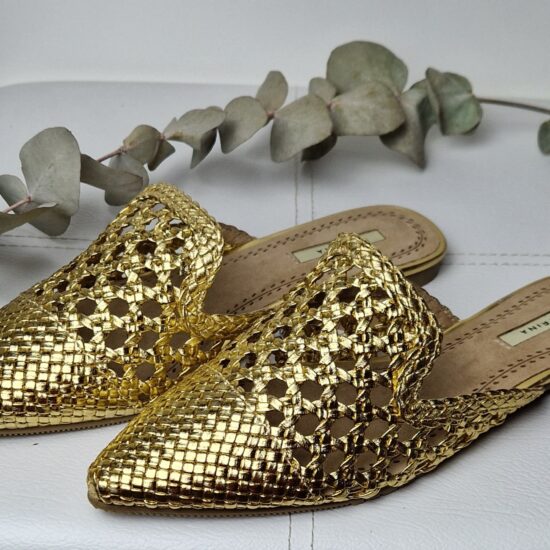 Mule calada en color dorado,plantilla acolchada.