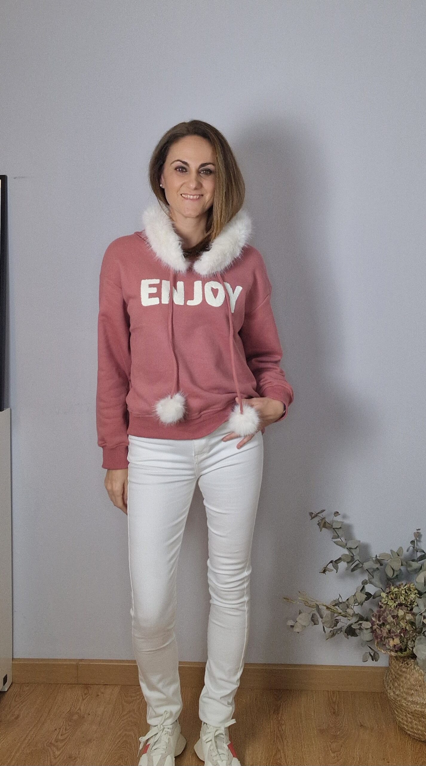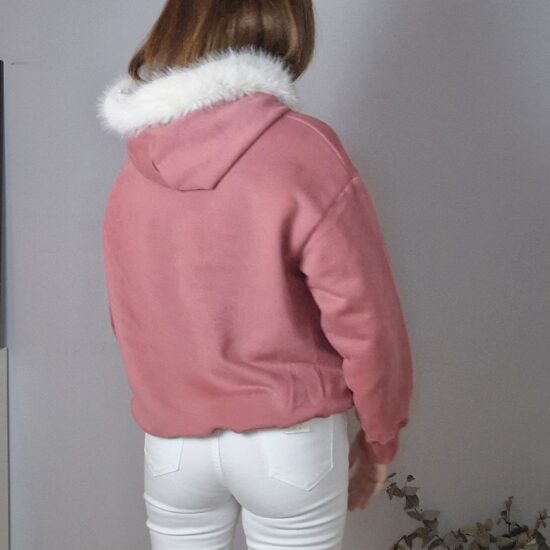 Sudadera con pelo en capucha desmontable y borlas, tacto suavef y felpa en el interior.