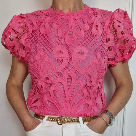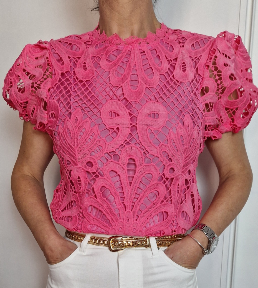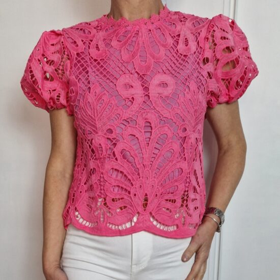 Blusa encaje.Con forro por la parte de delante.Abrochado por detrás con botón.