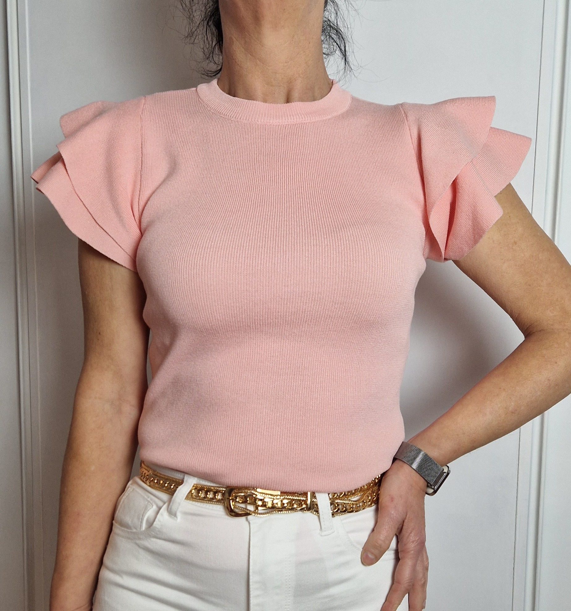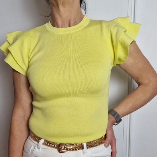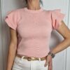 Top punto con doble volante en la manga. Largo: 55cm. 30 poliester 70 viscosa